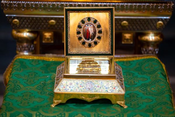 Великая святыня Православия была принесена в пределы Казахстанского Митрополичьего округа из Троице-Сергиевой Лавры по благословению Святейшего Патриарха Московского и всея Руси Кирилла в рамках празднования 600-летия обретения мощей преподобного Сергия Радонежского.