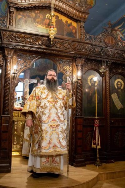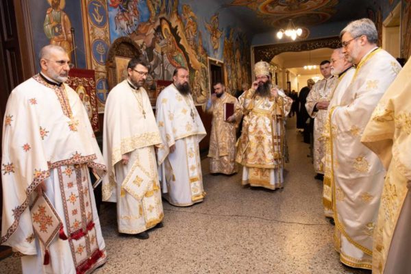 В края на богослужението еп. Герасим прочете поздравлението на Негово Светейшество Българския патриарх Неофит до преподавателите и студентите на Богословския факултет, с който и предстоятелят на БПЦ е дълбоко свързан като последен ректор на Духовната академия и пръв декан на обновения Богословски факултет през 1991 г.