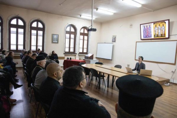 Трима светители в апсидата на православния храм“. На нея присъстваха представители на Софийска митрополия, преподаватели, студенти и гости на факултета.