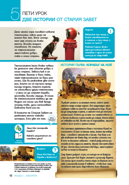 Автори на учебника са д-р Полина Спирова, д-р Златина Каравълчева и Цветомира Антонова, а художествените фотографии в изданието са на Стефка Борисова. За илюстрации са използвани отличени детски рисунки и приложни творби от Националния конкурс на МОН „Бог е любов“.