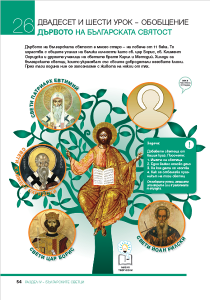 Издателството на „Двери“ участва в процедурата с модерен иновативен учебник, в който учебното съдържание е развито на принципа на интерактивността. В центъра на обучението са поставени учениците, които решават различни учебно-педагогически задачи. Изследвайки творението, пред тях се разкрива образът на Твореца – грижовен и любящ Баща. Важно място в учебника е отделено на екологията като част от отговорното отношение на човека към света. Освен с големите християнски празници третокласниците ще се запознаят с някои от най-известните български светци: св. Борис, св. Климент Охридски, св. патриарх Евтимий, както и със светци от родния край на децата. Накрая пред тях ще се разкрие вечно зеленото дърво на българската святост, за което се грижи Сам Господ Иисус Христос.
