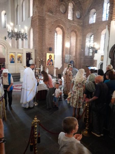 По установена вече традиция поклонническият път започна със св. Литургия в столичния старинен храм „Света Софѝя“. Църквата е и сборният пункт, където се събират участниците. Богослужението беше оглавено от архим. Василий, протосингел на Софийска митрополия, а в съслужение с него бяха о. Лъчезар Попов, новият председател на храма, и храмовото духовенство.
