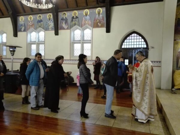 После Литургије оба пароха су позвали све присутне у црквену салу, где их је очекивао предиван ручак, око кога су се потрудили Вук Петковић и српски чланови наше парохије. За парохијане оца Франциска, којима се завршио петровски пост, припремљен је свадбарски купус, а за чланове парохије Светог Николаја Жичког – печена риба са кромпир салатом. Наши арапски пријатељи угостили су све присутне чилеанским вином и слатким десертом, а Срби – ракијом. На тај начин, заједничка Литургија и трпеза љубави објединиле су две православне парохије, у којима се моле припадници различитих народа и нација.