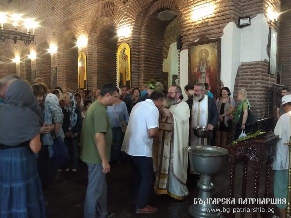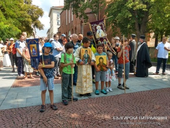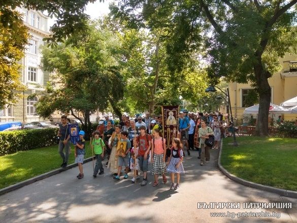 Днешното богослужение в началото на похода бе възглавено от ставрофорен иконом Ангел Ангелов, духовен надзорник и предстоятел на храма, в съслужение със свещеници. След богослужбата стотиците участници се отправиха с литийно шествие към Ротондата „Св. вмчк Георги Победоносец“, където са престояли мощите на преп. Йоан Рилски.