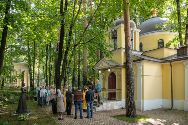 Отец Павел также отметил, что образ Великой княгини Елизаветы Фёдоровны, которая вслед за своим супругом возглавляла Императорское Православное Палестинское Общество, объединяет весь мир, освещает путь и соединяет людей. Прислуживал отцу Павлу молодой священник из Франции, действительный член ИППО Егор Соловьев. Перед чаепитием, на которое все собрались после службы, он прочёл «Отче наш» на французском языке.