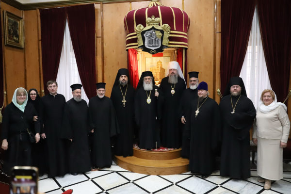 22 февраля митрополит Пензенский и Нижнеломовский Серафим, совершающий по благословению Святейшего Патриарха Московского и всея Руси Кирилла паломническое путешествие по Святой Земле, был радушно принят Блаженнейшим Патриархом Святого града Иерусалима и всей Палестины Феофилом III в Малом тронном зале Иерусалимской Патриархии.