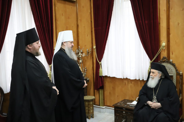 В ходе состоявшейся беседы Блаженнейший Патриарх Феофил и митрополит Серафим обменялись мнениями по актуальным вопросам современности, подчеркнув насущную необходимость отстаивать единство Православной Церкви, которая единственная в современном мире является хранительницей веры, культурных ценностей и национальной самобытности для всех народов, населяющих землю.