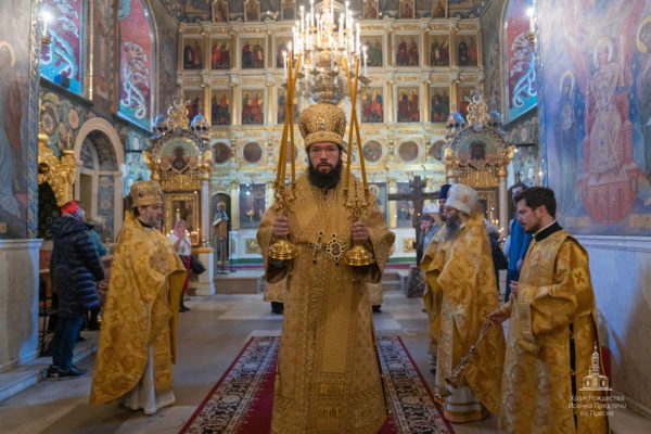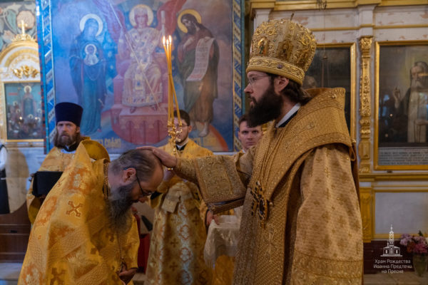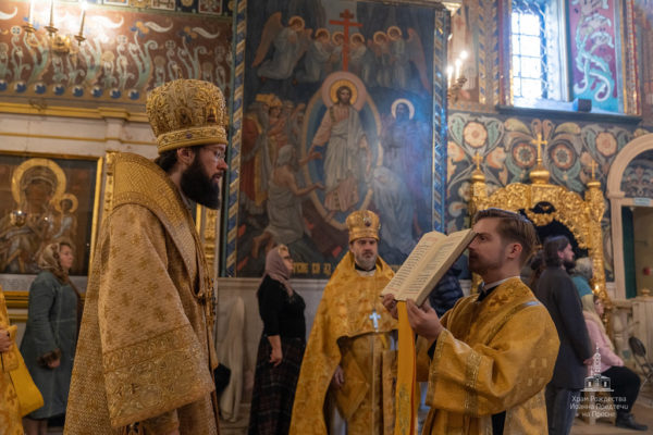 На малом входе по благословению Святейшего Патриарха Московского и всея Руси Кирилла митрополит Антоний возвел в сан архимандрита игумена Петра, избранного 13 октября 2022 года на заседании Священного Синода Русской Православной Церкви епископом Кафским.