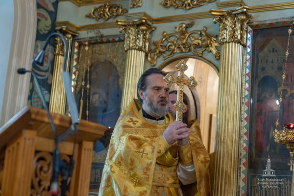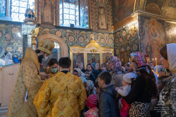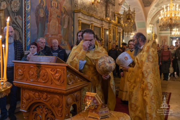 После отпуста Литургии было совершено славление у ковчега с частицей мощей святого Иоанна Предтечи.