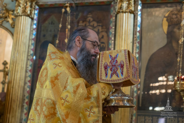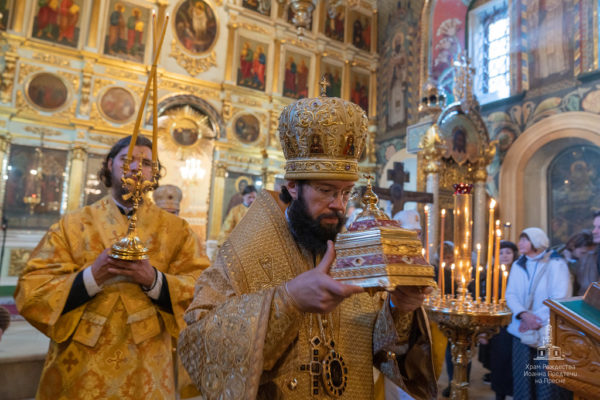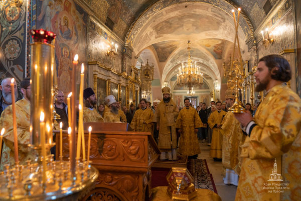 16 октября 2022 года, в Неделю 16-ю по Пятидесятнице, председатель Отдела внешних церковных связей Московского Патриархата митрополит Волоколамский Антоний совершил Божественную литургию в московском храме Рождества Иоанна Предтечи на Пресне.