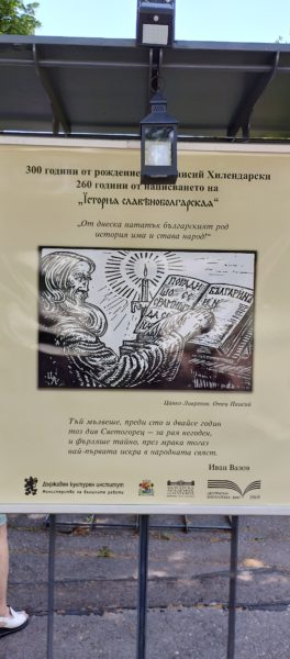 Централната библиотека на Българската академия на науките (ЦБ на БАН) представя в Галерия на открито пред Народния театър изложба по повод 300 г. от рождението на Св. Паисий Хилендарски и 260 г. от създаването на „История славянобългарска“.