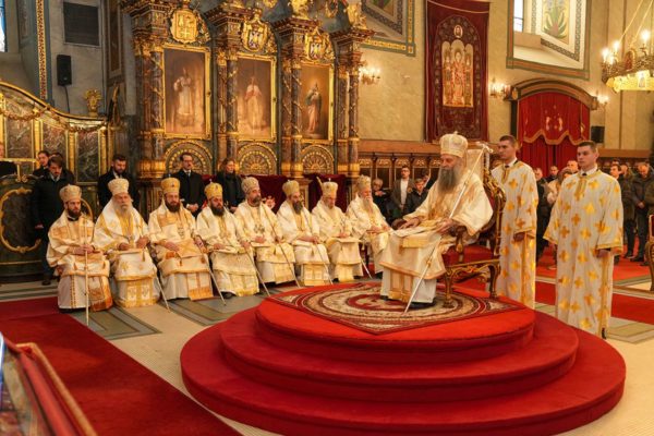 На крају празничног богослужења, речи благослова и очинске захвалности многобројном верном народу, архијерејима и свештенству упутио је Његова Светост Патријарх г. Порфирије: