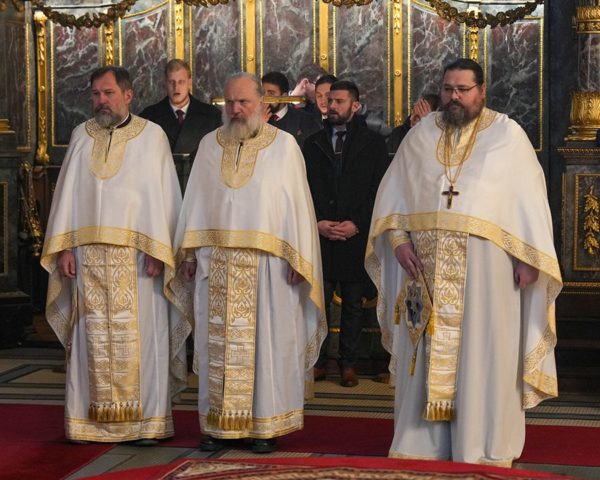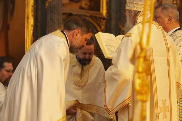 Током свете Литургије, на малом входу, Његова Светост Патријарх српски г. Порфирије је одликовао јереја Србољуба Убипариповића, декана Православног богословског факултета у Београду, и јереја Горана Мишановића чином протојереја.