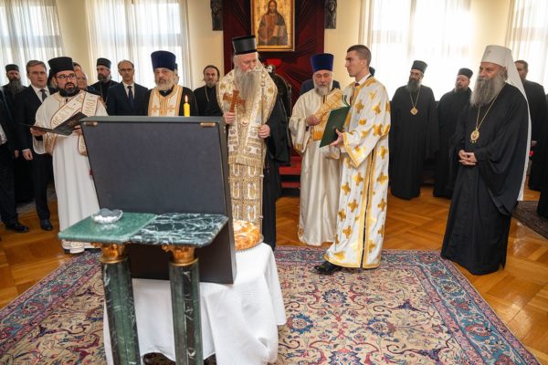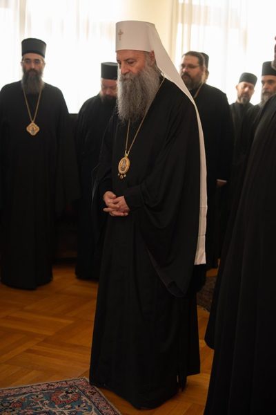 Поводом Сабора Светог Јована Крститеља – Јовандана, своје крсне славе, Патријарх г. Порфирије је угостио високе званице у Патријаршијском двору у Београду, где је свечани чин освећења славских дарова обавио Митрополит црногорско-приморски г. Јоаникије, који је том приликом Патријарху српском упутио речи срдачне честитке:
