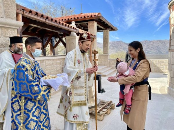 У новосаграђеном метоху Петропавловог манастира у Мркоњићима, насталом око дрвета, куће и цркве Светог Василија Тврдошког и Острошког, у Крстопоклону недељу Великог поста, верни су се сабрали на божанственом благодарењу.