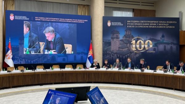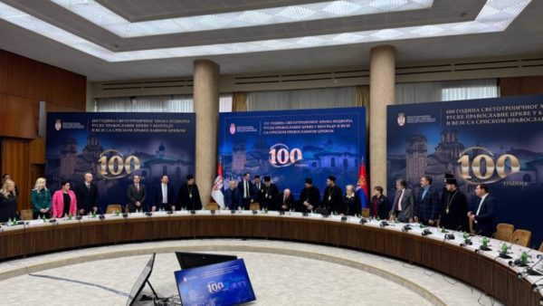 У уводном излагању присутнима су се обратили министар др Ненад Поповић, амбасадор Руске Федерације у Републици Србији Александар Боцан-Харченко и старешина Подворја Руске православне цркве у Србији отац Виталиј Тарасјев. Отац Виталије је нагласио да као старешина Светотројичиног храма има част да учествује у обележавању великог и значајног јубилеја, сто година постојања руске цркве у Београду.