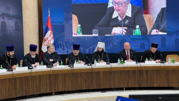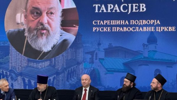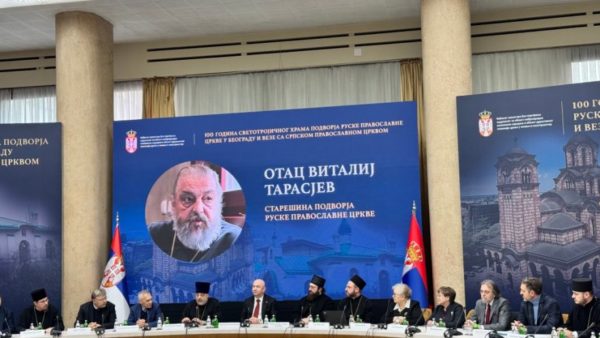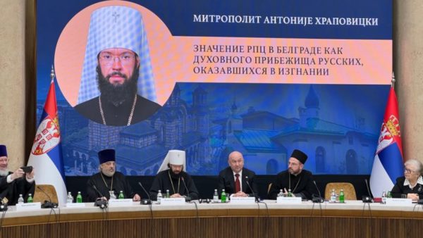 Данас, сто година од почетка изградње Свето-Тројичног храма, захваљујући великом труду свештенства и подршци вијерног народа, руско Подворје у срцу Београда наставља своју мисију служења као живи споменик братства и узајамне подршке. Овом приликом преносим благослов Његове светости Патријарха српског г. Порфирија, чија је жеља да ова конференција буде надахнуће да продубимо наше разумијевање узајамне повезаности, да оснажимо наше духовне везе и очувамо наслијеђе које нам је повјерено. Нека Господ својом милошћу и даље укрепљује, штити и благосиља наше народе и Цркве, да и у годинама које су пред нама заједно свједочимо вјеру и љубав према Богу и једни према другима.