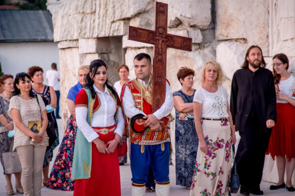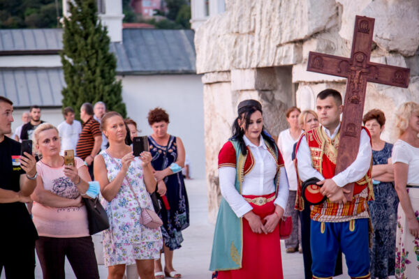 Обраћајући се народу који се сабрао на платоу испред храма, владика Амфилохије је рекао да је ову данашњу литију, као и друге ових дана, организовао сам народ и да је то поникло из његовог бића: