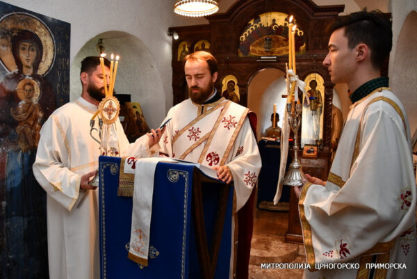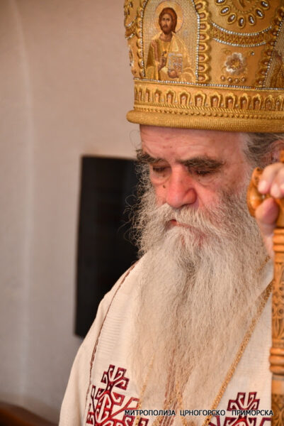 Архиепископ цетињски Митрополит црногорско – приморски г. Амфилохије је на крају Литургије пререзао славски колач, честитајући празник.