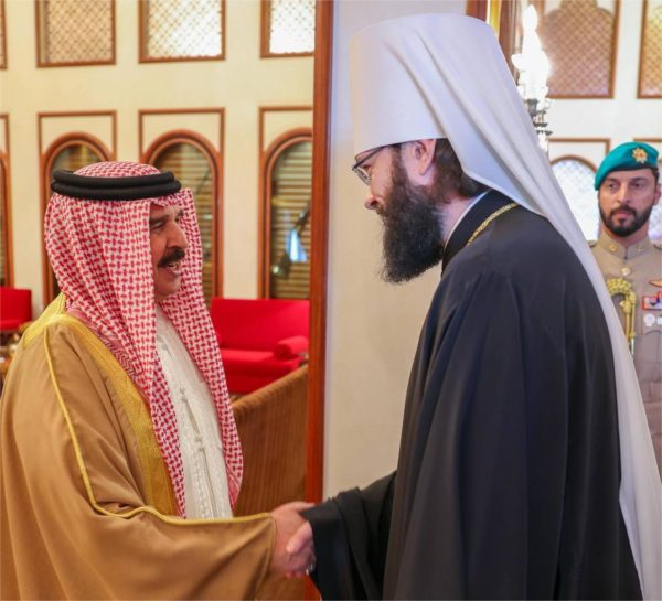 В ходе встречи архипастырь передал Королю сердечные приветствия и благопожелания от Святейшего Патриарха Московского и всея Руси Кирилла, а также поздравления с наступающими Национальным днем Бахрейна и 25-летием восшествия Его Величества на королевский престол.