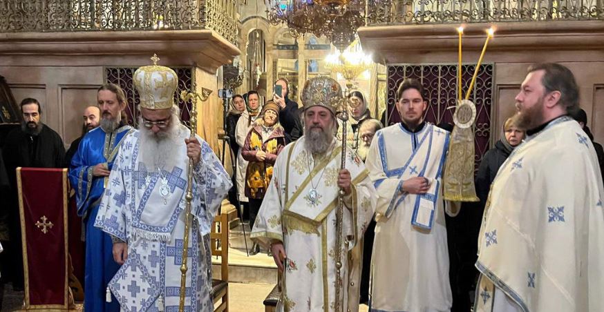Иерархам сослужили заместитель начальника Русской духовной миссии в Иерусалиме игумен Никон (Головко), клирик Миссии диакон Макарий Петухов, паломники в священном сане из России и клирики Святогробского братства, сообщает сайт РДМ.