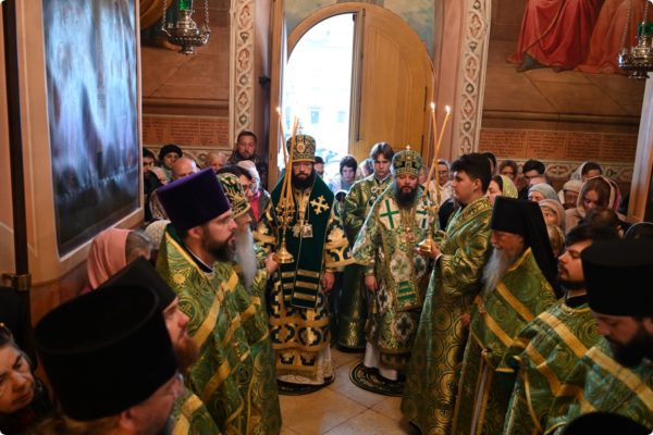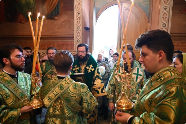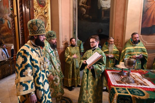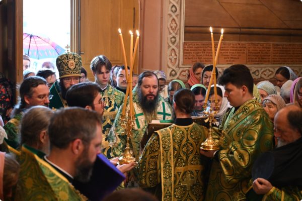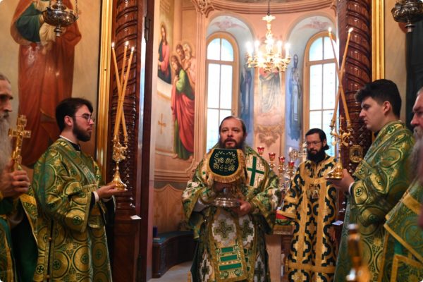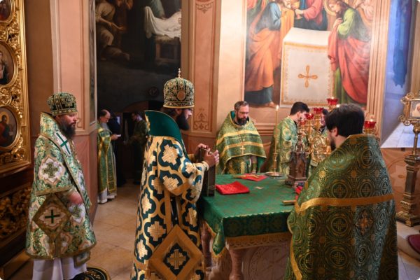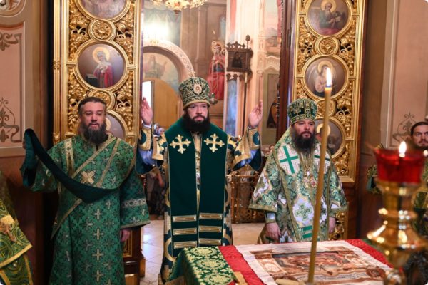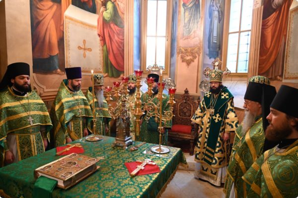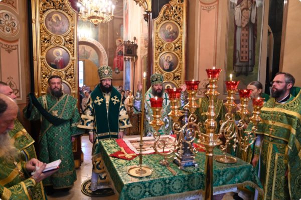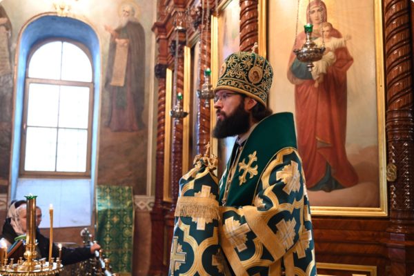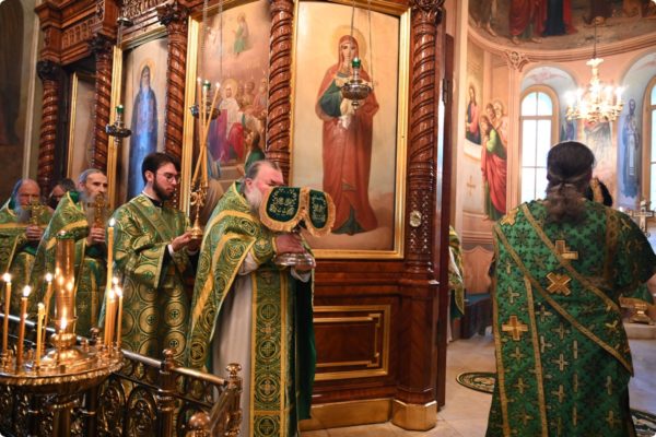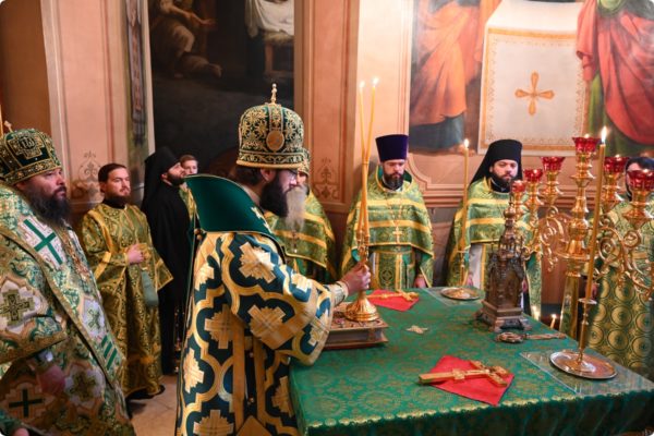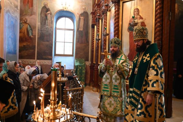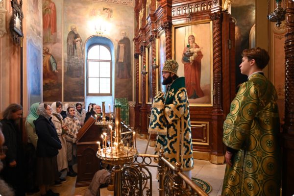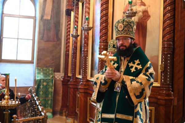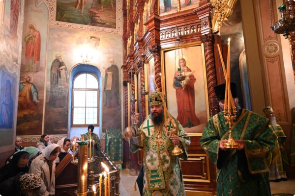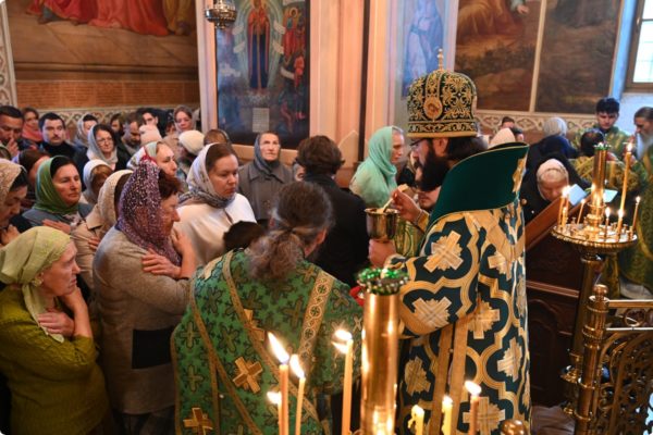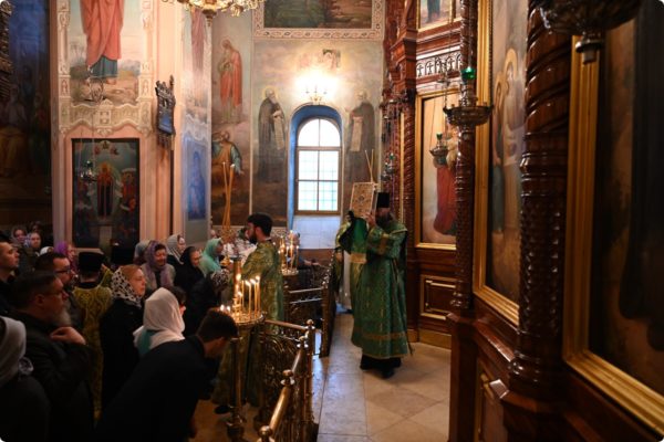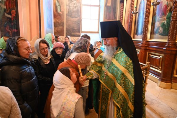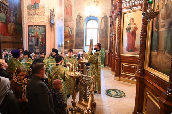 Затем архипастырь произнес проповедь, поздравив молившихся в храме с престольным праздником обители.