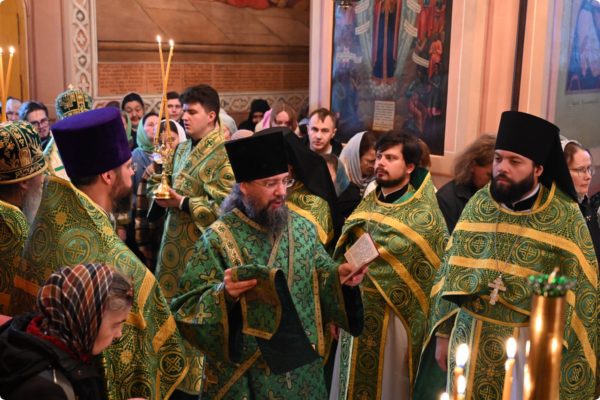 Иерархам сослужили сотрудник ОВЦС иеромонах Марк (Ахматханов), секретарь председателя ОВЦС иерей Николай Васин, насельники Лавры и паломники в священном сане.