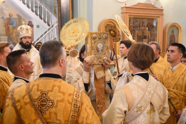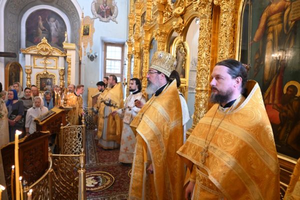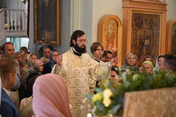 По завершении Литургии молебен святому Архангелу Гавриилу был совершен под открытым небом во дворе храма.