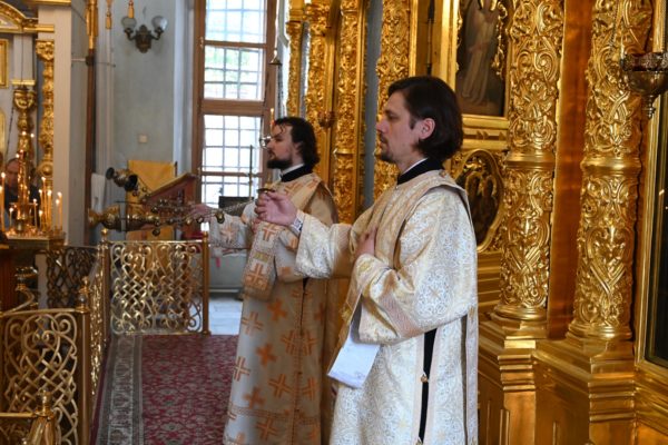 Божественную литургию в храме Архангела Гавриила совершили председатель Отдела внешних церковных связей Московского Патриархата митрополит Волоколамский Антоний, представитель Патриарха Антиохийского и всего Востока при Патриархе Московском и всея Руси, настоятель подворья митрополит Филиппопольский Нифон.