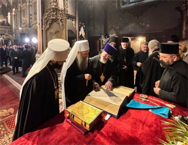 По окончании богослужения состоялось братское общение Святейшего Патриарха Порфирия с делегацией Русской Православной Церкви и Премьер-министром Сербии М.Вучевичем.