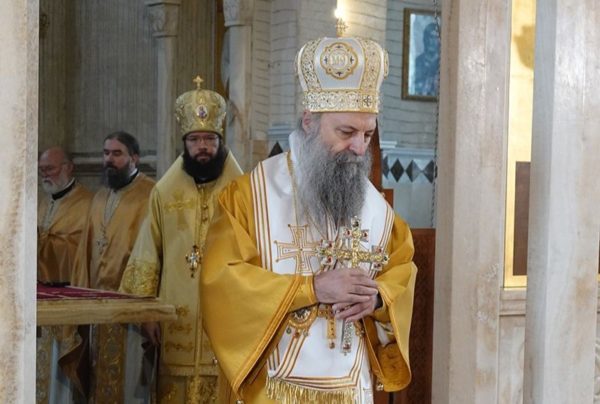 По окончании Божественной литургии и принятого в Сербской Церкви чина благословения и резания ко́лача Святейший Патриарх Порфирий обратился к верующим с проповедью о жизненном подвиге преподобного Симеона Мироточивого.