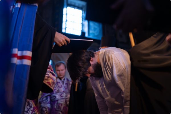 По окончании богослужения архипастырь совершил монашеский постриг иеромонаха Петра (Ахматханова), сотрудника Секретариата ОВЦС по межхристианским отношениям. В монашестве ему было наречено имя в честь святителя Марка Эфесского.