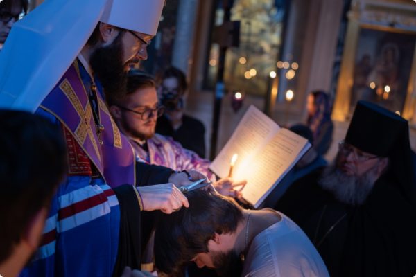 По окончании богослужения архипастырь совершил монашеский постриг иеромонаха Петра (Ахматханова), сотрудника Секретариата ОВЦС по межхристианским отношениям. В монашестве ему было наречено имя в честь святителя Марка Эфесского.