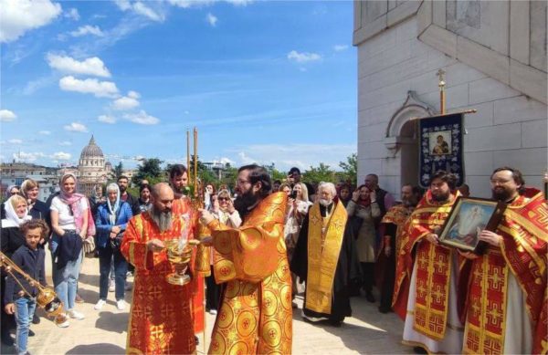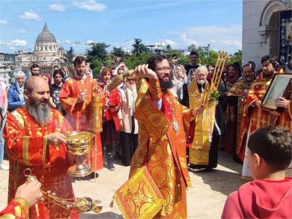 27 апреля председатель Отдела внешних церковных связей Московского Патриархата митрополит Волоколамский Антоний, по благословению Святейшего Патриарха Московского и всея Руси Кирилла посещающий Италию и Ватикан с рабочим визитом, совершил Божественную литургию в храме святой великомученицы Екатерины в Риме.