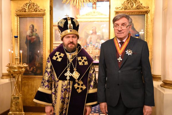 Митрополит Волоколамский Иларион вручил высокую Патриаршую награду художественному руководителю Академического Большого хора «Мастера хорового пения» Л.З. Конторовичу