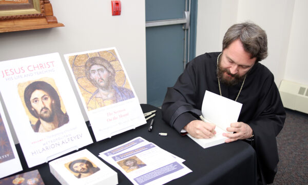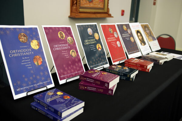 Владыка Иларион представил собравшимся пятитомное издание своей книги «Православное Христианство». Автор рассказал о концепции этой книжной серии, а также кратко коснулся основных тем, раскрытых в каждой из пяти книг: история и каноническое устройство Православной Церкви, догматы и вероучение, церковное искусство, благочестие и литургическая жизнь, Таинства и обряды. Также владыка представил первый том из серии книг о жизни и учении Спасителя и рассказал о тематике остальных томов, с которыми еще предстоит познакомиться англоязычному читателю.
