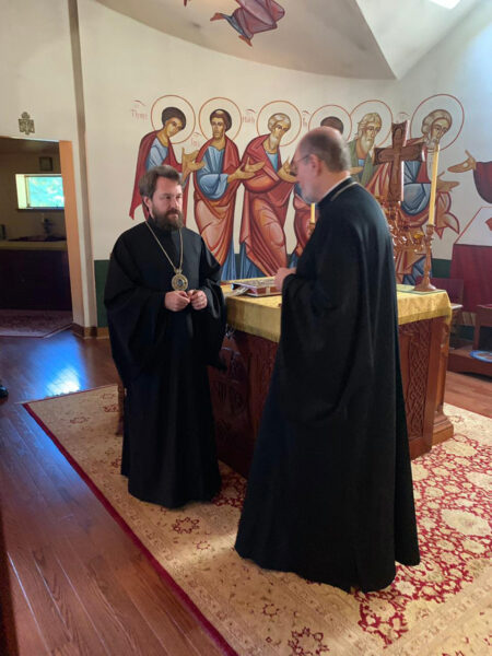 От имени профессорско-преподавательской корпорации и учащихся семинарии, а также руководства SVS Press протоиерей Чад сердечно поблагодарил митрополита Илариона за интересную беседу и в память о посещении духовной школы преподнес в дар архипастырю оригинал письма выдающегося церковного композитора XX века Александра Гречанинова (†1956), последние годы жизни и творчества которого прошли в Нью-Йорке.