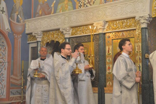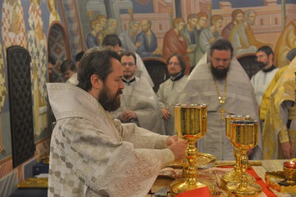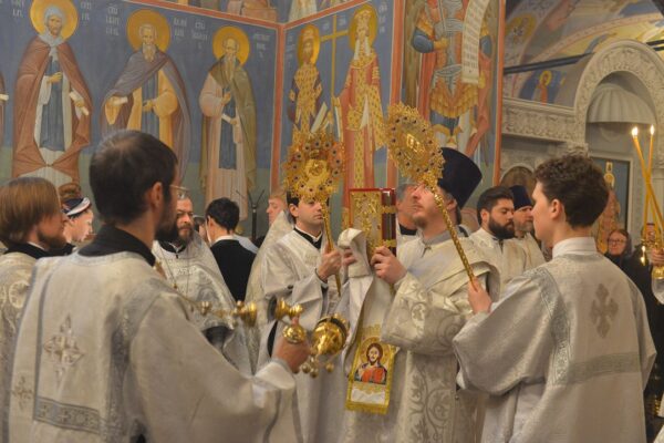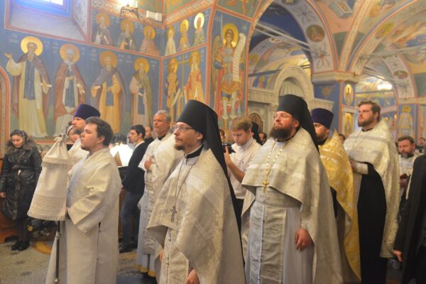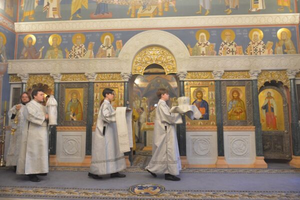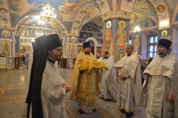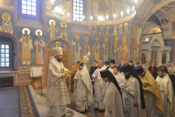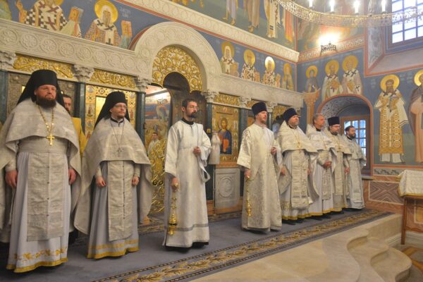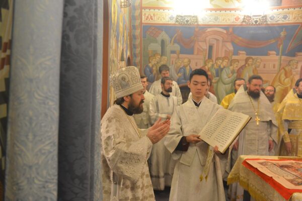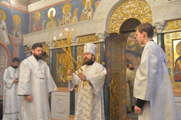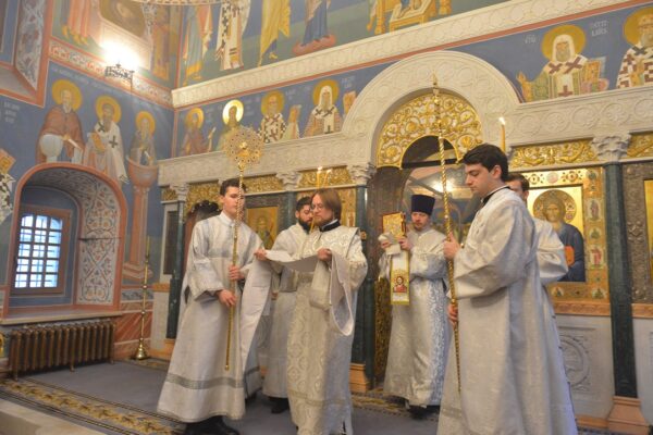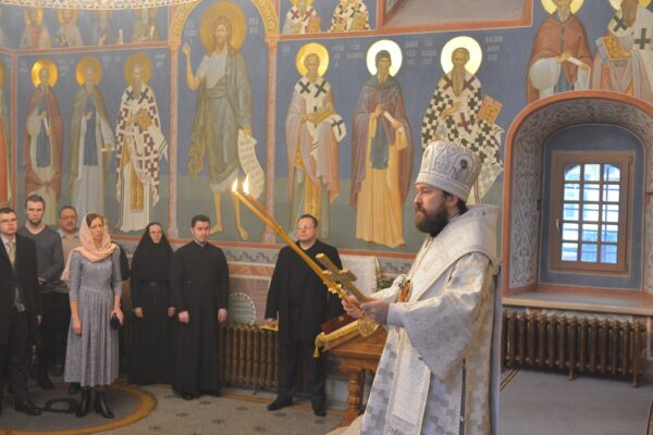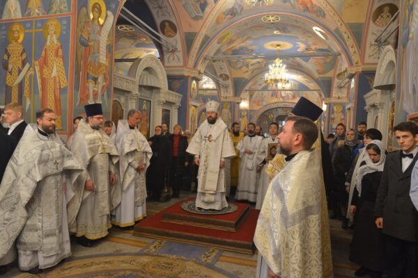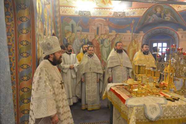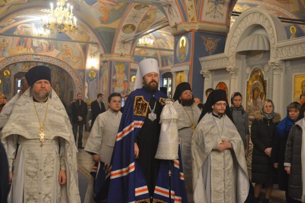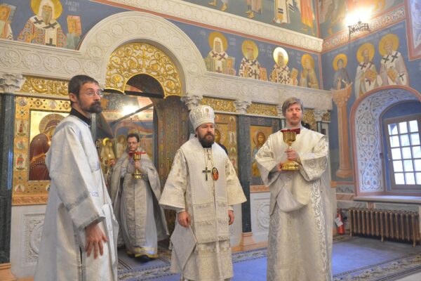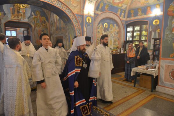 После сугубой ектеньи владыка вознес молитву о мире на Украине.