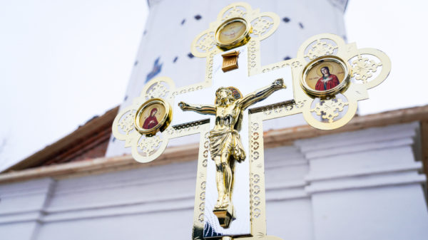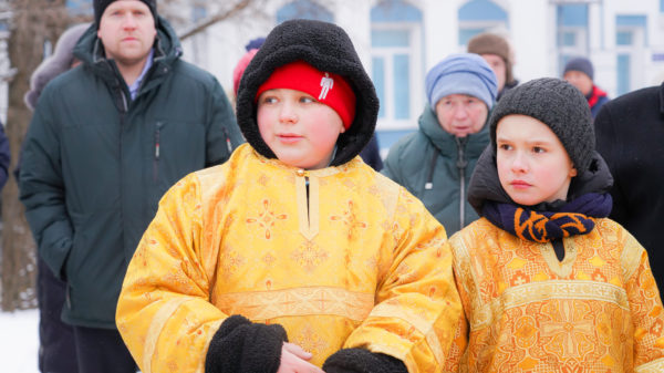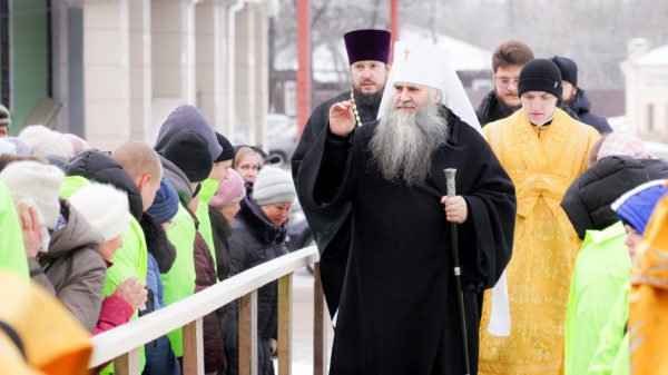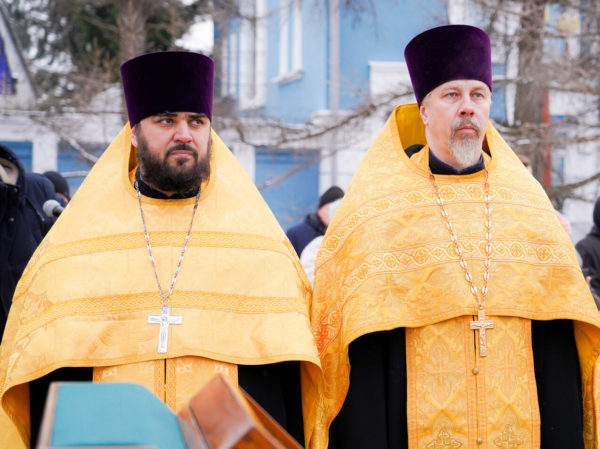 Перед началом чина освящения митрополит Георгий обратился к собравшимся со святительским словом: «7 июля 2024 года мы с вами совершали молитву на закладку этого святого храма в честь Рождества Пресвятой Богородицы. Сегодня 7 февраля 2025 года мы с вами будем возносить молитвы к Владычице Небесной на освящение крестов и куполов уже воссозданного храма. Будем иметь намерения благоукрашать этот святой храм, чтобы он стал как невеста Христова».