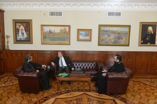 Митрополит Иларион тепло приветствовал высокопоставленного дипломата, завершающего свою миссию в Москве.