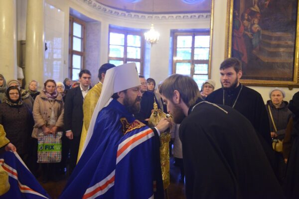 После сугубой ектении митрополит Иларион вознес молитву о мире на Украине.