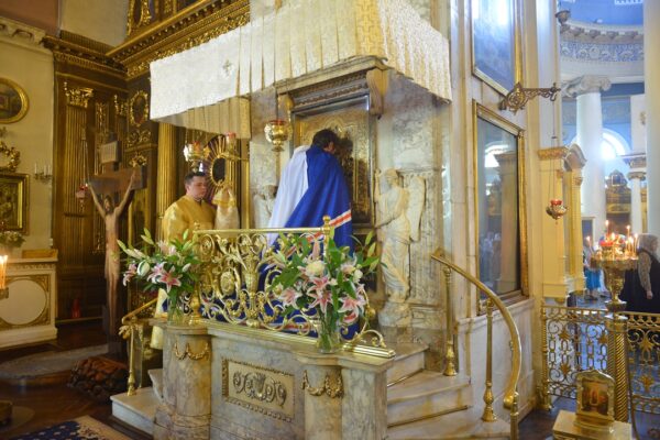 После сугубой ектении иерарх вознес молитву о мире на Украине.
