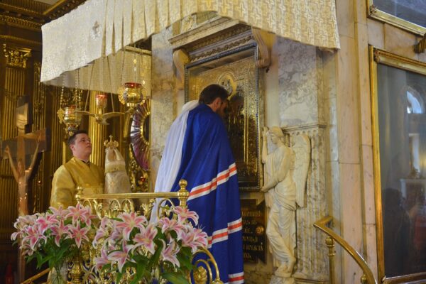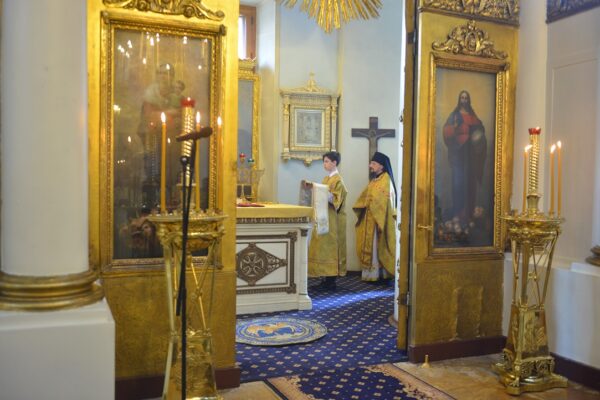 После сугубой ектении иерарх вознес молитву о мире на Украине.