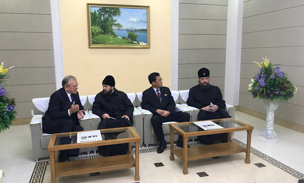 24 ноября 2018 года митрополит Волоколамский Иларион прибыл во главе делегации Русской Православной Церкви в Пхеньян. В аэропорту столицы Корейской Народно-Демократической Республики председателя Отдела внешних церковных связей Московского Патриархата встречали председатель Православного комитета КНДР Виталий Ким Чи Сон, Чрезвычайный и Полномочный посол Российской Федерации в КНДР А.И. Мацегора, настоятель Троицкого храма в Пхеньяне священник Феодор Ким, дипломаты Посольства России в Пхеньяне и клирики пхеньянского храма. Вместе с митрополитом Иларионом в КНДР прибыли управляющий приходами Московского Патриархата в странах Восточной и Юго-Восточной Азии архиепископ Солнечногорский Сергий, сотрудник ОВЦС Д.И. Петровский, иподиакон председателя Отдела внешних церковных связей В.Ю. Ли и иподиакон архиепископа Солнечногорского Сергия Н.Ф. Соколов.