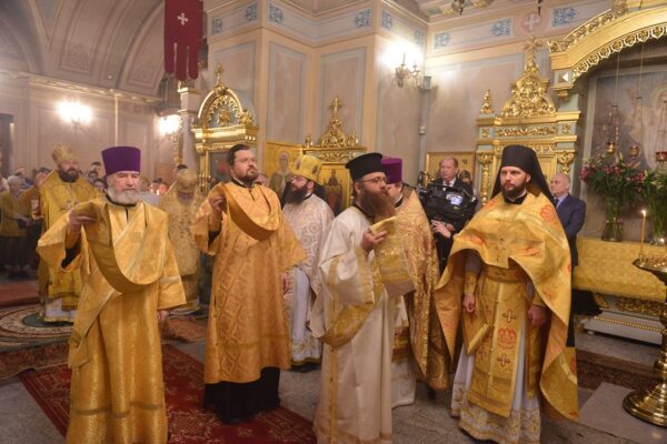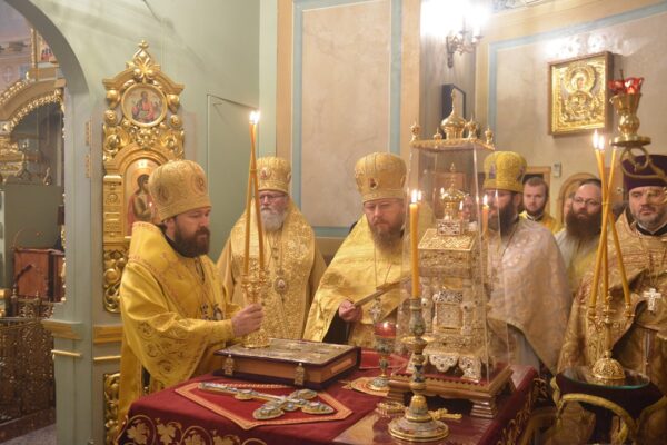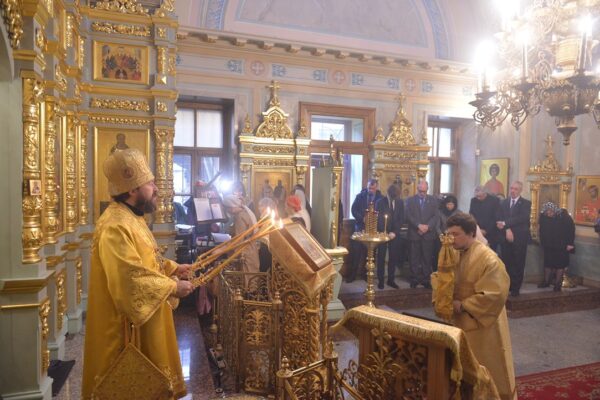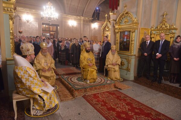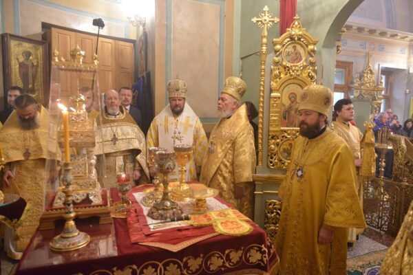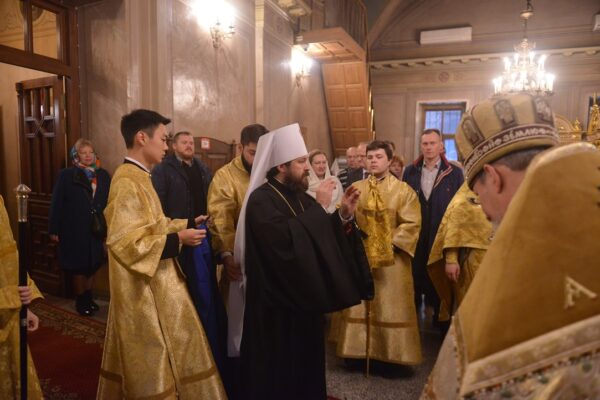 После сугубой ектеньи митрополит Иларион вознес молитву о мире на Украине.