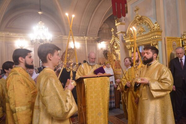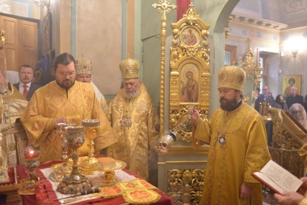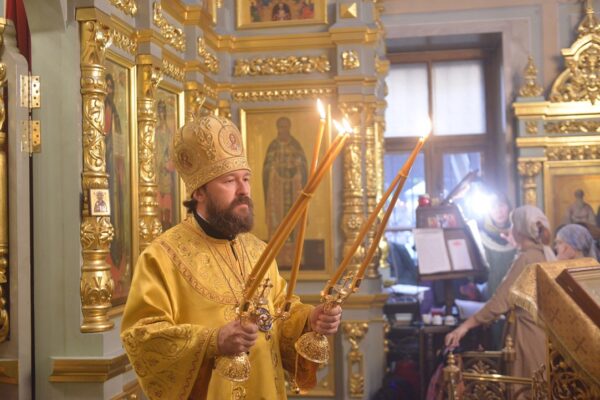 Митрополит Волоколамский Иларион поздравил всех присутствующих с престольным праздником храма от имени Святейшего Патриарха Московского и всея Руси Кирилла. В архипастырском слове владыка сказал: