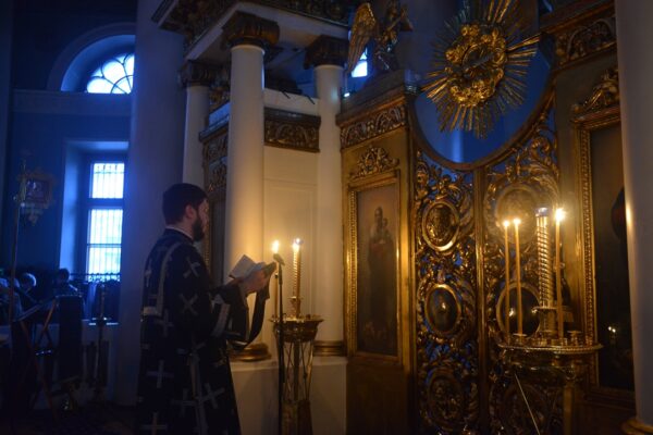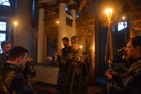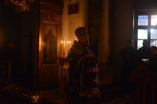 За пассией, которая была совершена в московском храме в честь иконы Божией Матери «Всех скорбящих Радость», владыке Илариону сослужили клирики храма.