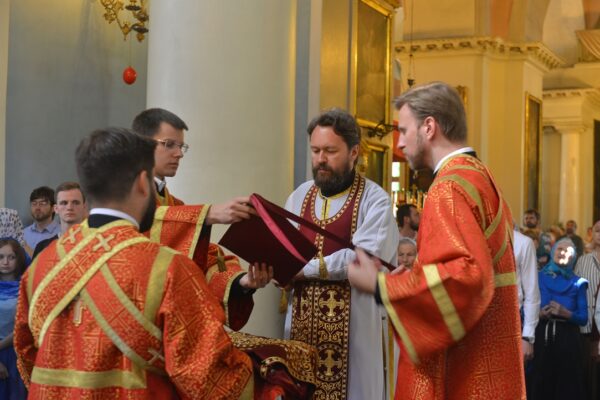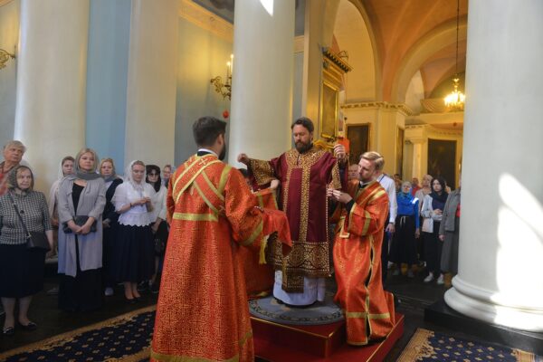 Митрополиту Илариону сослужили клирики храма.