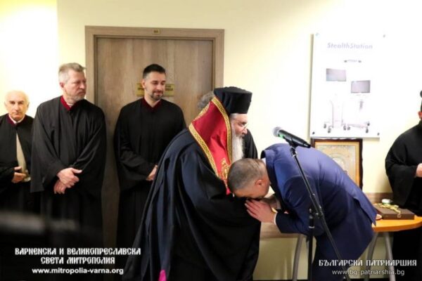 Негово Високопреосвещенство поздрави ръководството на Медицински университет – Варна “Проф. д-р Параскев Стоянов” в лицето на ректора проф. д-р Красимир Иванов, ръководството на Университетската болница в лицето на изпълнителния директор проф. д-р Валентин Игнатов, както и екипът на Клиниката по неврохирургия с началник проф. д-р Явор Енчев.