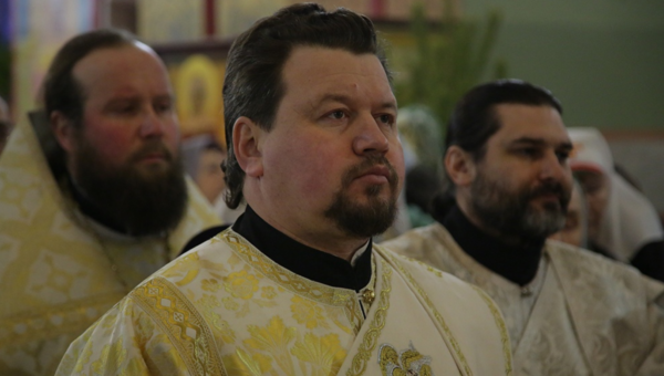 Со словом проповеди по запричастном стихе обратился к молящимся протоиерей Николай Малета.